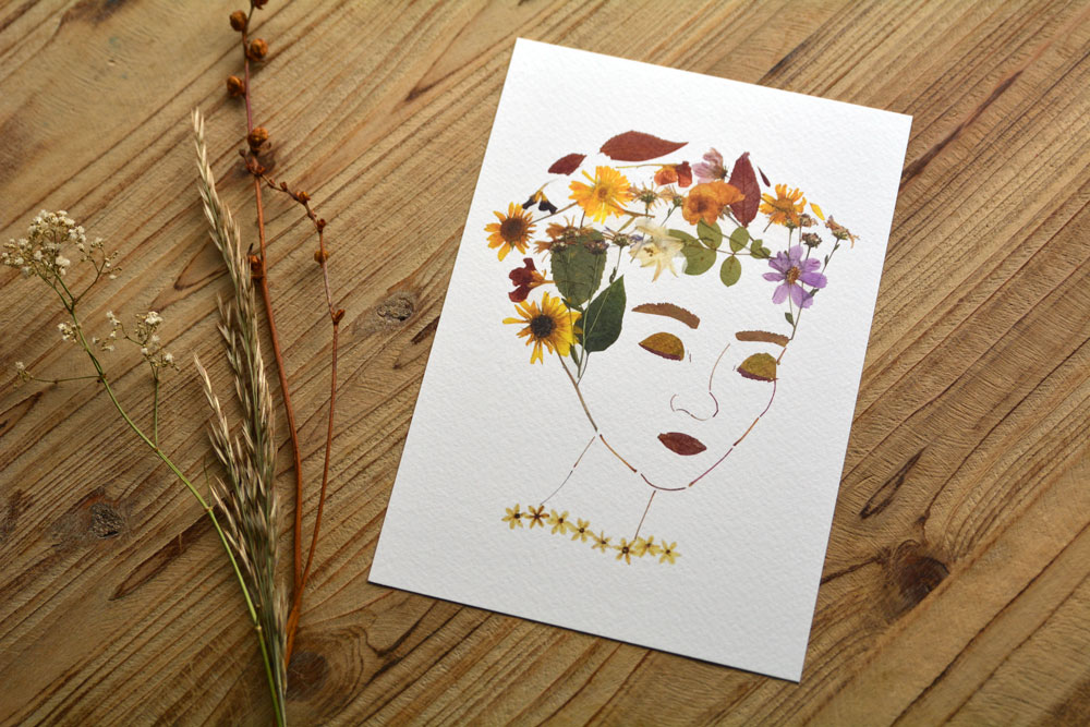 De creatie op de voorkant is geheel handgemaakt van gerecycled bloemen- en plantenmateriaal. De takjes en blaadjes worden los en in perfecte harmonie op een ondergrond geplaatst, gefotografeerd en vervolgens weer terug naar de natuur gebracht.